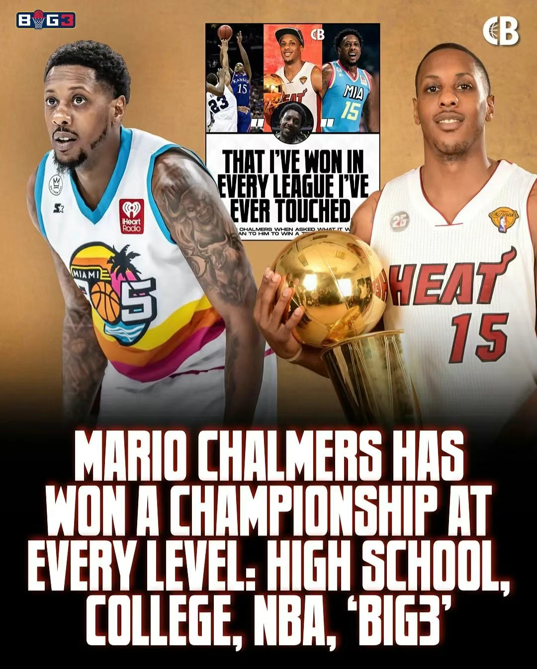 从 2 次高中联赛冠军,到 1 次 NCAA 冠军,再到 2 次 NBA 总冠军,如今加上 BIG 3 联赛冠军,查尔莫斯的冠军履历堪称传奇,且每一个冠军都绝非侥幸所得。