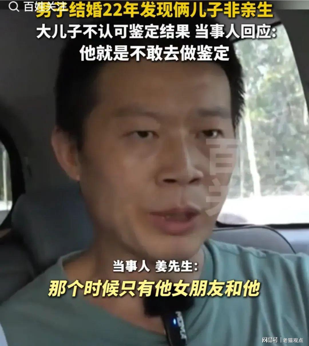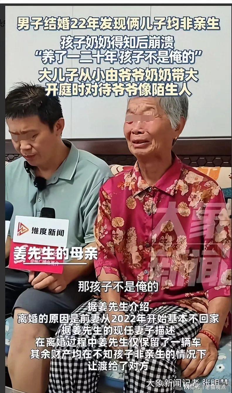 事情大家都知道了吧?姜先生和前妻结婚22年,辛辛苦苦养了两个儿子,结果离婚后被大儿子打了,一怒之下做了亲子鉴定,结果两个孩子都不是亲生的。