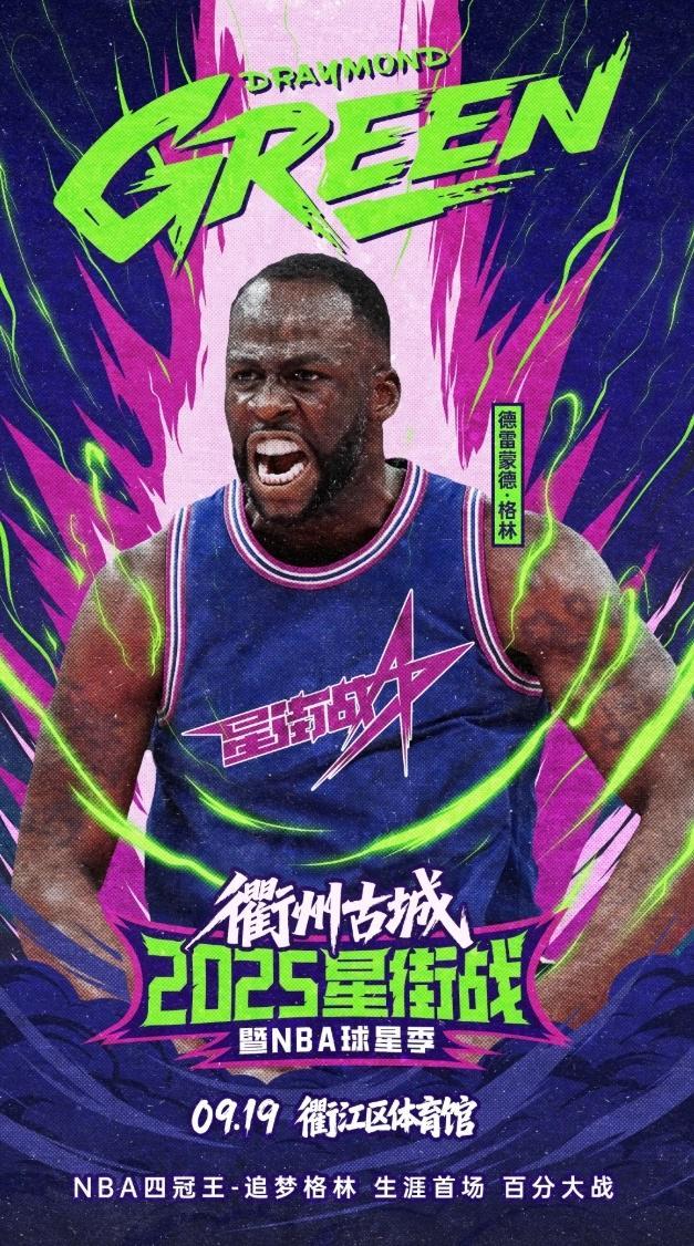 追梦格林此前曾经通过社媒宣布,他将在9月19日来到中国衢州,参加一场百分大战。值得一提的是,这是追梦格林篮球生涯首场百分大战。